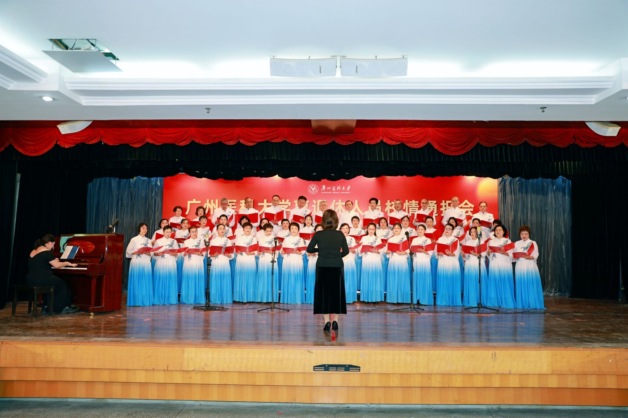 通报会结束后,新春文艺汇演拉开帷幕。此次汇演由退休管理科科长李祥勇主持。学校退休教工合唱团以气势恢宏的大合唱《壮美延安》和深情婉转的《世界赠予我的》率先登场,深情表达了对祖国、学校和生活的无限热爱。附属第三医院“柔济夕阳红旗袍队”的表演步履优雅,尽显东方韵致;学校退休教工合唱团男声部歌声铿锵,礼赞奉献精神;学校退休教工舞蹈队舞姿飒爽,诠释军魂忠诚;附属肿瘤医院退休教工粤韵悠扬,唱响羊城深情;附属口腔医院退休教工诗朗诵声情并茂,描绘祖国蓬勃画卷;学校退休教工太极队演绎太极扇法,将传统文化魅力融入健康风采;附属第四医院退休教工创新融合朗诵与舞蹈,声情并茂,令人耳目一新;学校退休非洲鼓队以欢腾热烈的鼓点,传递对中华民族大家庭的深情祝福。