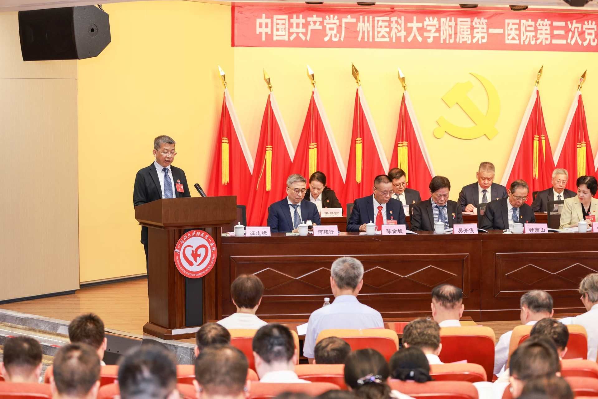 附属第一医院党委书记汪志标代表中国共产党best365中国官方网站附属第一医院第二届委员会作题为《守正创新 锐意进取 奋力开创医院高质量发展新局面》报告。