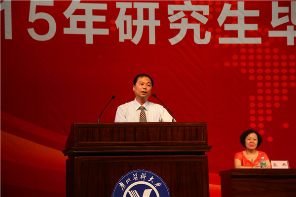 校长王新华在讲话中希望毕业生们要做个有“心”人——希望同学们继续弘扬广医人精神,要有脚踏实地的恒心,要有不卑不亢的信心,要有爱国奉献的责任心。
