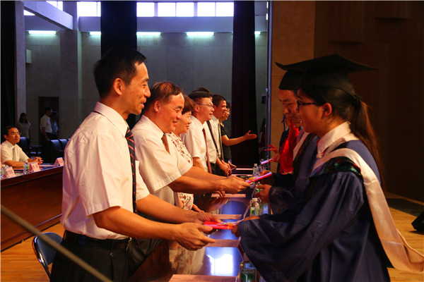仪式由副校长魏东海主持。研究生院院长刘金保宣读研究生优秀毕业生获奖名单,共有82名同学获表彰,毕业生代表上台领奖。陈法江和公共卫生学院雷毅雄教授作为毕业研究生和导师代表作发言。他们分别表达了对母校的感恩之情、对同学们的美好祝愿。