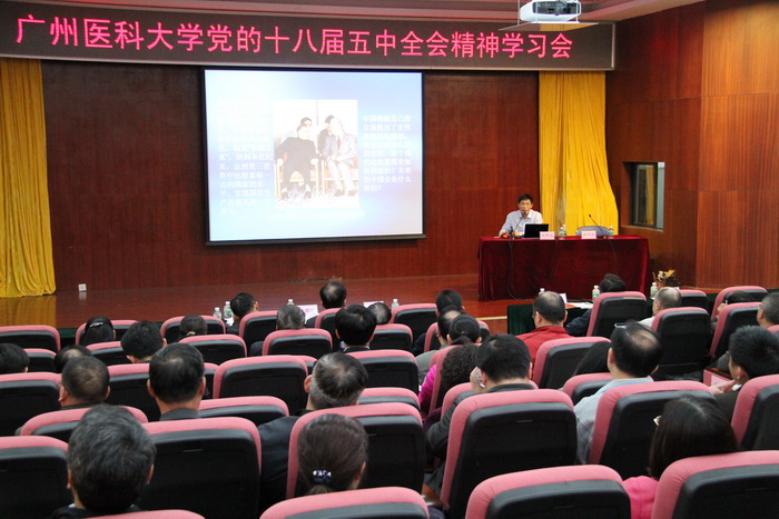 12月11日下午,为深入学习贯彻十八届五中全会精神,best365在番禺校区图书馆报告厅举行“党的十八届五中全会精神”专题报告会。省委宣讲团成员、省委宣传部讲师团团长杜新山应邀作题为“全面建成小康社会的行动指南”的专题报告。best365党委冉丕鑫书记主持报告会,王新华校长、学校全体中层干部等听取了报告。