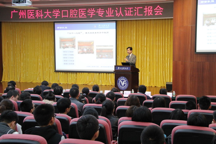 12月24日上午,口腔医学本科专业认证汇报会在番禺校区图书馆报告厅举行。专家组全体成员、学校领导、口腔医学院及各院系部处相关负责人、口腔医学院各教研室及职能部门负责人、教师代表及学生代表共100多人参加了汇报会。
