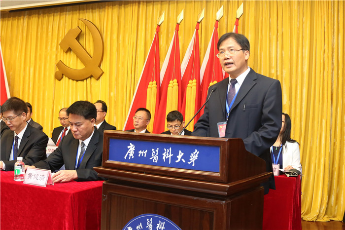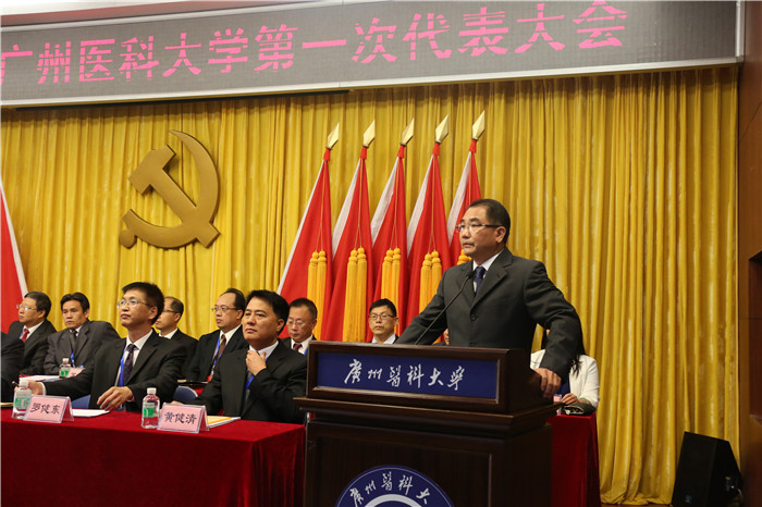 吴强代表市教育局党委向大会的召开表示热烈祝贺,向学校全体共产党员和广大师生员工致以诚挚问候。他说,自广州医学院第十次党代会召开以来,学校党委的党建、思想政治工作和精神文明建设取得了突出成绩,有力地推动了教学、科研和学校各项事业的发展,为推动广东省广州市经济社会发展做出了积极贡献。广东省正全力推进高水平大学建设,11月3日市委审定了《中共广州市委广州市人民政府关于建设高水平大学的实施意见》,这为best365中国官方网站的发展提供了宝贵的机遇和广阔的平台。在学校发展的关键时期召开的一次承前继后的大会,意义重大、影响深远。吴强代表市教育局党委向即将产生的新一届党委提出三点希望:一是坚持从严治党,不断加强和改进党的建设;二是坚持立德树人,不断提高人才培养质量;三是坚持改革创新,加快高水平大学建设步伐。他说,市教育局相信学校新一届党委一定能团结带领全校党员干部和师生员工,凝心聚力、开拓进取,谱写新的篇章、创造新的业绩。