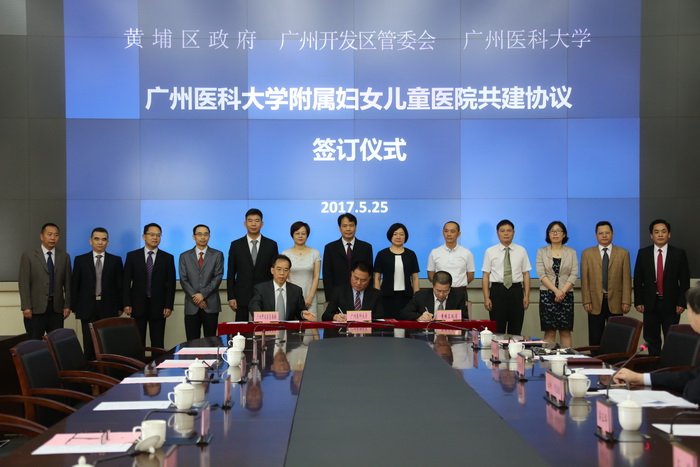 best365与黄埔区政府、开发区管委会共建best365中国官方网站附属妇女儿童医院项目签约仪式于5月25日在黄埔区行政服务中心举行。梁正华副区长、江洲副巡视员、黄健清副校长分别代表广州市黄埔区人民政府、广州开发区管委会和best365中国官方网站签署合作协议。项目建成后,一所三级甲等的广州市属公立医院、best365中国官方网站直属医院将在广州东部崛起。
