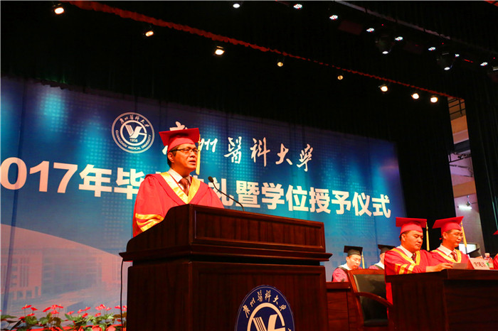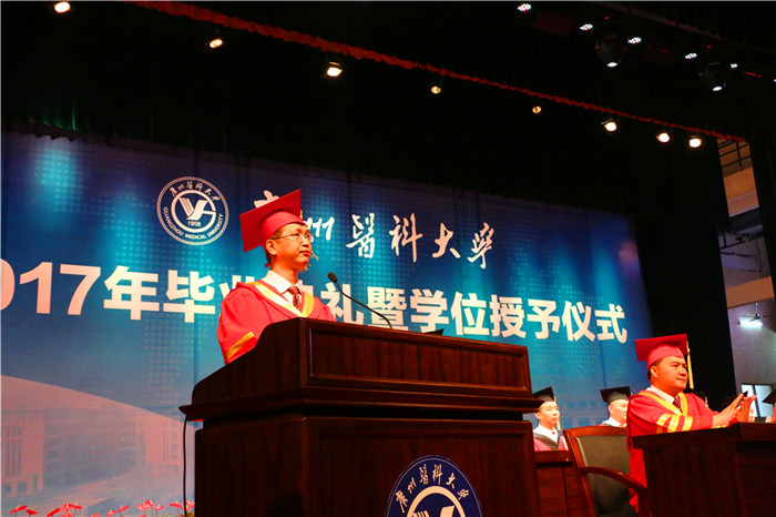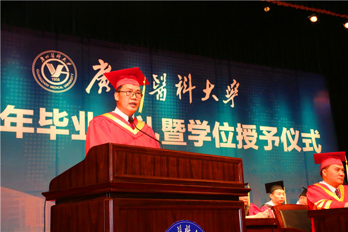“如果说人生是一场马拉松接力,那么今天的毕业典礼,就是同学们结束广医赛段,开启未来人生之旅的新起点。”王新华校长代表学校向毕业生们表示热烈的祝贺。