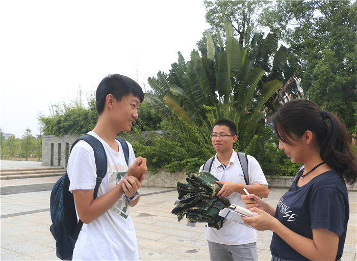 初来乍到,热情的师兄师姐和美丽的校园给他留下很深的印象,而且学校的路线特别清楚。陈家樟说,他刚来半天就可以假装“老腊肉”带新生逛了。此次同行的妈妈对学校环境也是称赞不已。