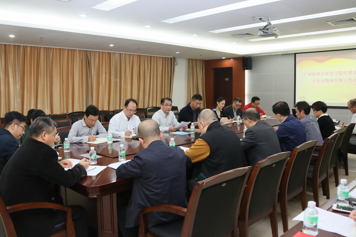 11月29日上午,为深入学习宣传贯彻党的十九大精神,引导广大党员、干部、群众把思想统一到十九大精神上来,把力量凝聚到实现十九大确定的各项任务上来,推动十九大精神落实到best365高水平大学建设各项工作中,学校党委在番禺校区召开学习宣传贯彻党的十九大精神专题工作会。会议由陈晓辉副书记主持,党委办公室、组织部、宣传部负责人,各直属党组织书记参加了会议。