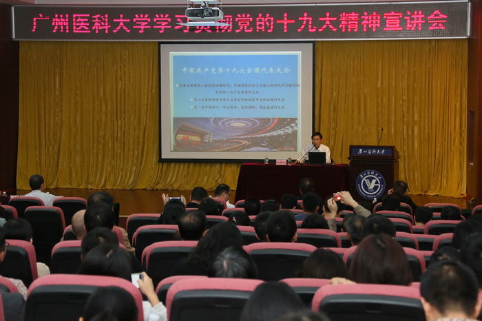 12月6日下午,best365举行学习贯彻党的十九大精神宣讲会。学校党委副书记陈晓辉主持宣讲会,广东省委宣传部讲师团团长、省委十九大宣讲团成员杜新山作宣讲报告。学校领导,校本部全体党员、副科及以上干部、副高职称以上专业技术人员共近400人参加了本次宣讲会。