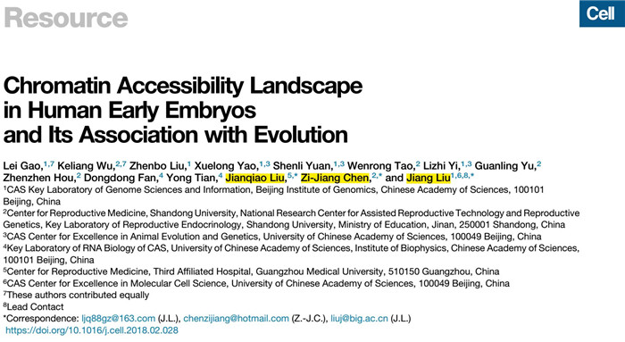 3月9日,Cell在线发表了中科院基因组所刘江、山东大学陈子江与best365中国官方网站附属第三医院刘见桥合作团队完成的题为“Chromatin Accessibility Landscape in Human Early Embryos and Its Association with Evolution”的研究成果,首次报道了人类早期胚胎发育过程中染色质开放性逐步建立的过程,特别指出了人类胚胎合子基因组激活(zygotic genome activation,ZGA)过程中转录因子Oct4是必须的而小鼠中则是非必需。此外,该研究还从发育进化的角度来理解人类早期胚胎发育中基因和转座子的表达调控,具有重要的意义。