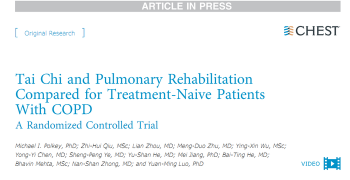 如何促进肺康复锻炼的普及,提高患者肺康复锻炼的依从性,一直是国内外呼吸科医务工作者关注的问题。近日,一项广州呼吸健康研究院的最新研究成果在CHEST杂志发表:太极拳这一柔缓的、循序渐进的运动方式可作为一种成本更低、更易实行的康复锻炼形式,在改善COPD患者功能状态方面的效果与传统肺康复锻炼相当。