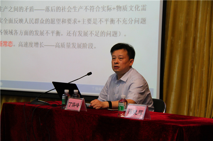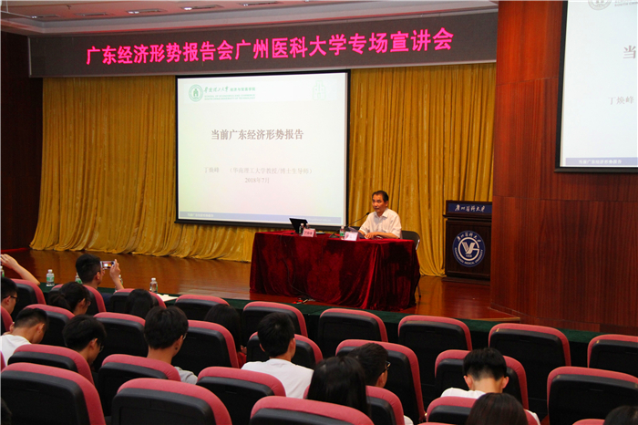 为深入贯彻落实习近平总书记重要讲话精神,牢固树立“四个意识”,坚定“四个自信”,展现广东广州沿着习近平总书记指引的方向奋力实现“四个走在前列”的新气象新作为,根据省委统一部署,市委宣传部、市教育局等部门组织进市内高校等举行广东经济形势报告会,7月6日,报告会专场活动在best365番禺校区举办,华南理工大学经济与贸易学院经济学教授、博士生导师丁焕峰来校做专题报告,学校党委副书记陈晓辉主持报告会。
