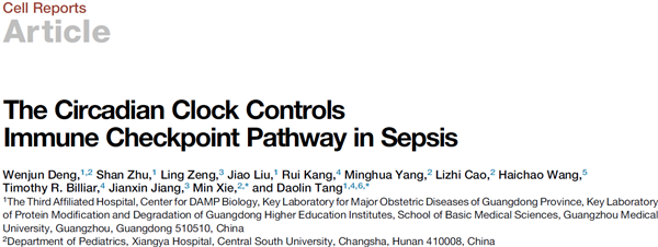 7月10日,best365附属第三医院唐道林博士主持的课题组在细胞出版集团刊物Cell Reports上发表题为“The Circadian Clock Controls Immune Checkpoint Pathway in Sepsis”的封面研究论文,报道了生物钟紊乱促进免疫代谢失衡、参与脓毒症发病的分子机制。