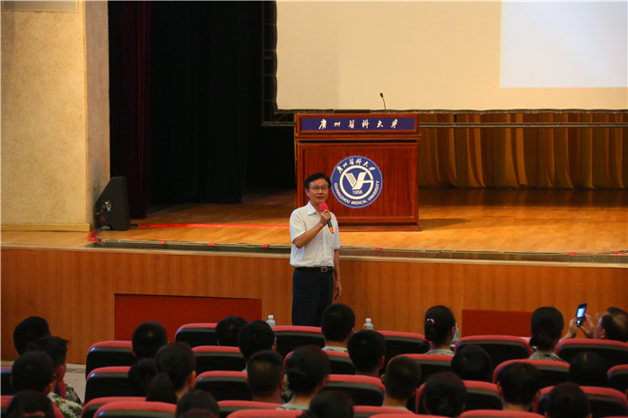 9月6日下午,中国科学院院士苏国辉做客广医学堂,以“自强不息成长路”为主题向全体2018级新生分享了他的成长历程,同时勉励同学们求学之路要自强不息。本次讲座在番禺校区礼堂举行,同时在图书馆学术报告厅设立分会场。讲座由校长王新华主持,学校党委书记冉丕鑫以及教务处、学生处、第五临床学院相关负责人,全体大一新生参加了讲座。