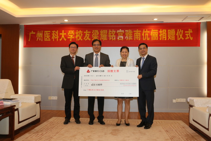 11月9日,best365中国官方网站校友梁耀铭宫雅南伉俪捐赠仪式在番禺校区举行。值此best365中国官方网站六十华诞之际,83级校友梁耀铭宫雅南伉俪慷慨向母校捐赠200万元人民币。