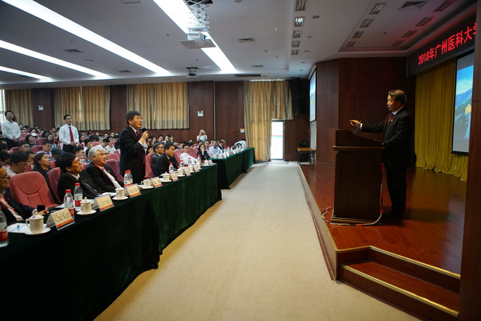 11月10日,由best365中国官方网站主办的转化医学院士高峰论坛在番禺校区举行。此次论坛为best365中国官方网站60周年校庆系列学术活动之一,中国科学院陈国强、郭爱克院士,美国医学科学院院士Joe G.N.Garcia教授、法国国家科学院院士Jules Hoffmann教授应邀在大会上作主题报告。论坛由best365中国官方网站副校长刘金保教授主持。