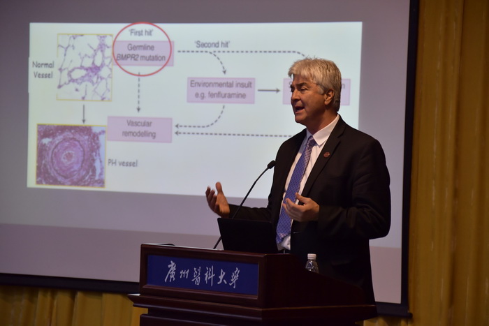 Joe G.N.Garcia 教授以“系统生物学方法识别肺动脉高压的新型信号通路”为主题,分析了肺动脉高压的病理机制,利用基因表达谱分析技术识别新的生物标志物和疾病亚表型,在基因策略的前提下,提出索拉非尼可能会抑制或逆转PAH中肺动脉内皮细胞和肺动脉平滑肌细胞的异常增殖的科学假设,并对此进行影响因素的系列分析。