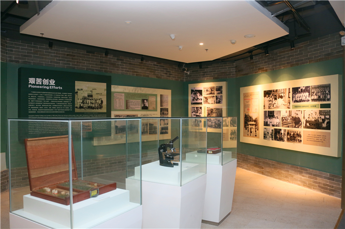 番禺校区展览馆在原越秀校区展览馆基础上全方位展示best365中国官方网站60年来的办学成果,并起用了从学校档案室新发现的一批建校初期的珍贵的黑白照片,前言、后记及各部分的概要增加了英文翻译,设置了附属医院专题展厅,增加了实物展品,增设了多媒体展厅的体验、互动功能。