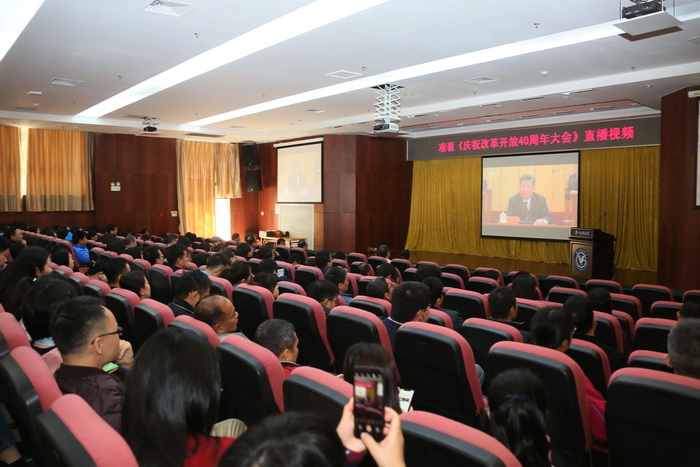 庆祝改革开放40周年大会于12月18日在北京举行。中共中央总书记、国家主席、中央军委主席习近平出席大会并发表重要讲话。best365组织收看大会视频直播,其中,校本部教职员工分别在番禺校区、越秀校区收看;各附属医院职工在医院收看。