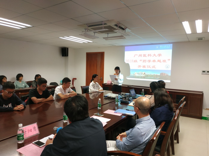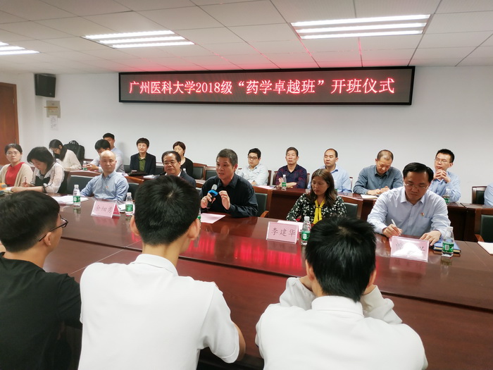 2018级“药学卓越班”开班仪式于3月20日在番禺校区举行。学校纪委书记陈杰、相关职能部门负责人、药学院教师代表、2018级药学卓越班30名学生参加了开班仪式。