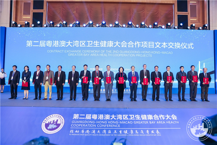 大会上,广东省卫生健康委员会、香特别行政区政府食物及卫生局、澳门特别行政区政府社会文化司三方签署了《粤港澳大湾区卫生健康合作共识》,其主要内容包括:以人民健康为中心,推动优质医疗资源紧密合作,加强公共卫生应急领域合作,深化中医药领域创新合作,拓展科研和服务领域合作,强化人才培养和诊疗合作。