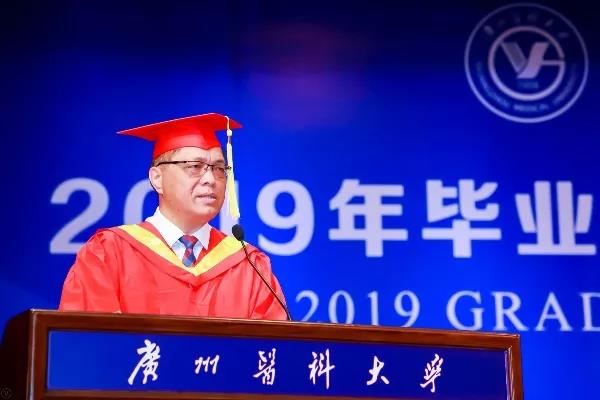 德高望重的“80后”钟南山院士来到典礼现场,为2019届毕业生讲“最后一课”。他深情回忆了自己毕业59年来所经历的挫折与困难、所执着的理想与追求,结合广医作为地方院校不断发展壮大的历程,向同学们提出两点要求:一是人要适应工作,在工作中培养兴趣,干一行钻研一行;二是无惧压力,不怕挫折,克服困难,将压力转化为动力。他期望广医毕业生有梦想、有追求、有激情、要争气,在广阔的社会舞台上发挥自己的聪明才干。