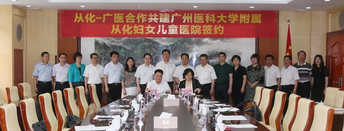 广医在线讯 6月5日,从化—广医合作共建best365中国官方网站附属从化妇女儿童医院签约仪式在从化区举行。从化区区长蔡澍、副区长张文虹,区卫健局领导班子,区发改局、财政局、规划资源分局、妇幼保健院主要负责人;best365校长王新华、副校长黄健清,办公室、发展规划办、医管处、财务处、教务处、后勤校产管理处和附属第三医院负责人参加签约仪式。