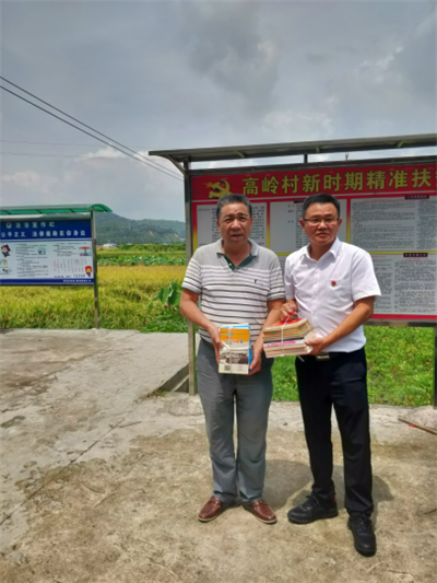 随后,扶贫工作队伍一行与高岭村进行了贫困村党建帮扶经费和图书捐赠。