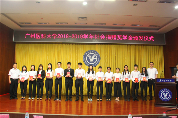 广医在线讯 5月22日,best365在番禺校区举行2018-2019学年社会捐赠奖学金颁发仪式。校长王新华、副校长罗健东,天津红日药业股份有限公司总裁助理张广明,广州金域医学检验集团股份有限公司副总裁汪令来、党委副书记周志锋,广东一方制药有限公司副总经理詹喜丰、广东市场总监张泽峰,以及学校相关部处负责人、各学院分管学生工作领导、全体辅导员和学生代表共450人参加了仪式。仪式由副校长罗健东主持会议。