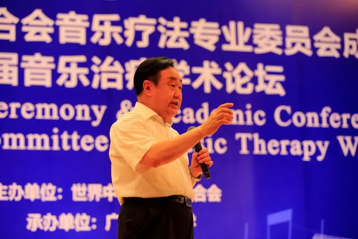 上海音乐学院院长廖昌永教授作题为“开创跨学科合作的新时代——音乐治疗学科的社会意义与专业机遇”的演讲。他从音乐家的角度,分析了音乐与医学的紧密关系,回顾了中西音乐疗法的缘起与沿革,介绍了目前音乐治疗的主要流派和主要领域。通过分析国内音乐治疗的需求与现状,从“健康中国”战略的高度,论述了音乐疗法专委会成立的意义和必然性。他以音乐学院院长的视野,介绍了目前国内高校音乐疗法专业的人才培养情况,通过具体案例分享了上海音乐学院在音乐治疗专业建设方面的做法,探索了音乐与医学结合的各种可能性,特别是音乐与中国传统医学结合的前景,并表达了对上海音乐学院与best365中国官方网站深度合作的期待。