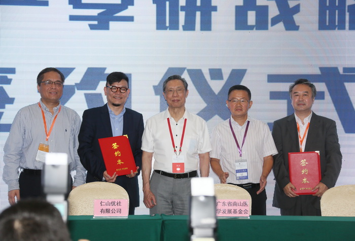 广州南山科创基金合作签约仪式、香港新世界与钟南山院士团队大湾区产学研战略合作签约仪式、广东省德良慈善基金会“呼吸健康援疆行”和新疆埃乐欣药业有限公司“呼吸健康援疆行”捐赠仪式也在会上举行。