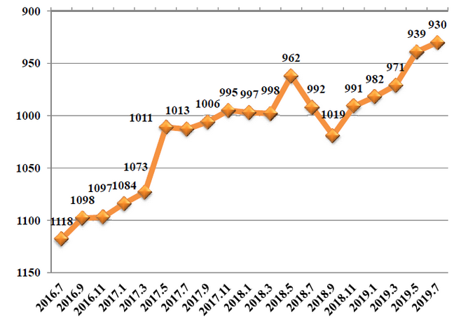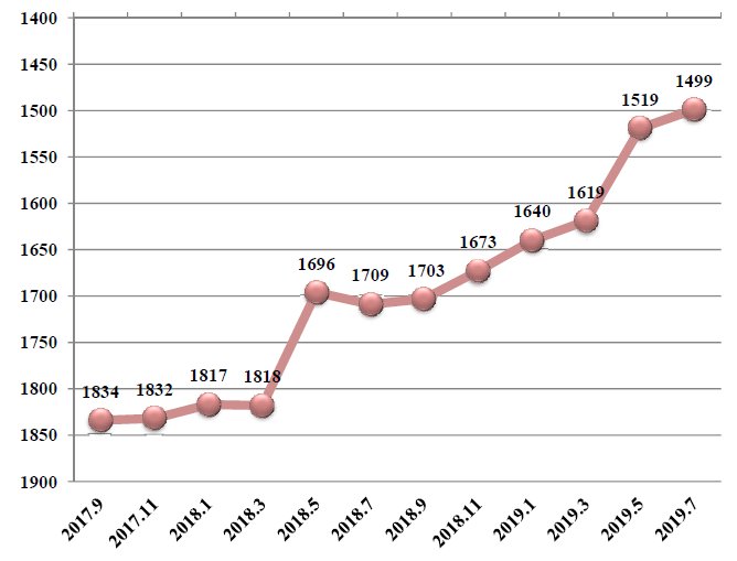 best365ESI全学科综合排名趋势图(2017.9-2019.7)