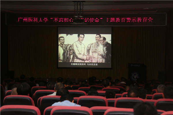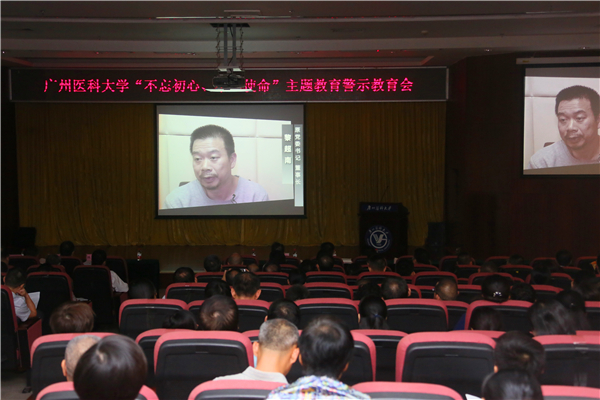 广医在线讯 根据广东省纪委关于将今年纪律学习月活动融入“不忘初心、牢记使命”主题教育的要求,结合best365“不忘初心、牢记使命”主题教育有关工作安排,学校党委9月25日下午组织党员干部集中观看警示教育专题片《泯灭的初心—原广州市商务委党组书记、主任肖振宇严重违纪违法案警示录》、《玩火—广州二运公司黎超南等人干扰对抗巡察警示录》和革命传统教育专题片《彭湃》。学校领导,全体中层干部,校本部机关、后勤8级职员以上干部和全体党员,校本部各党总支和教工党支部委员,共300余人参加观看。