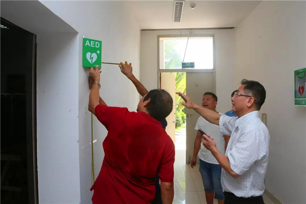 此次84级校友捐赠的AED设备,已安装在行政楼一楼、学生活动中心一楼、体育馆一楼、食堂一楼、校医室和学校正门保安岗等场所。