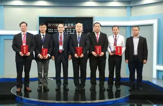 邢若齐副局长致辞。段志勤总编辑介绍了“2019健康卫士”发布活动的情况。“2019健康卫士”共设立 “终身成就奖”“致敬人物奖”“卓越成就奖”“创新团队奖”四项荣誉称号。国家呼吸系统疾病临床医学研究中心副主任郑劲平教授获得“致敬人物奖”。邢若齐副局长、韩济生院士、段志勤总编辑分别为获奖者颁奖。