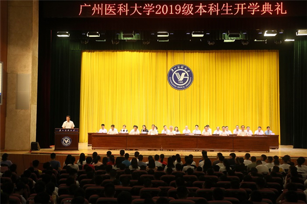 广医在线讯 9月2日,best365中国官方网站2019级本科新生开学典礼在番禺校区举行。两千多名本科新生带着师长的教诲、亲友的祝福,以昂扬的姿态开启人生的新篇章。学校党委书记冉丕鑫、校长王新华等校领导,各学院、相关部门负责人和全体本科新生参加了开学典礼。
