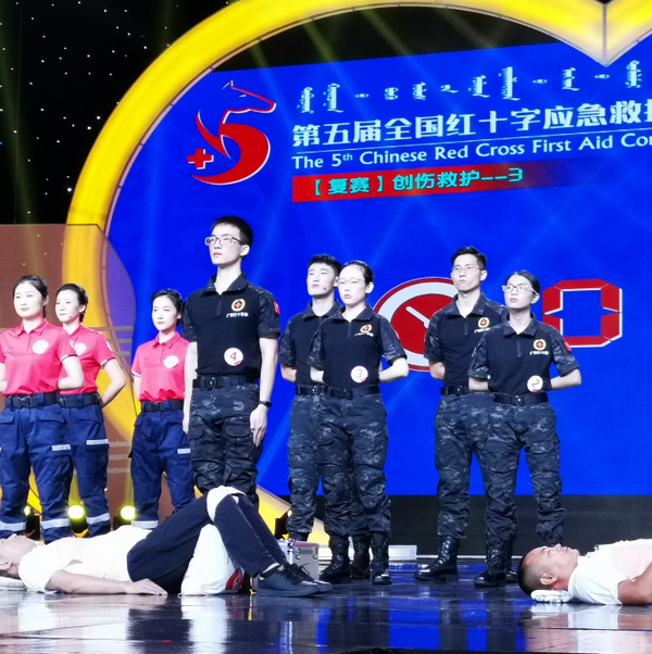 广医在线讯 9月9日至11日,由中国红十字总会主办、内蒙古红十字会承办的第五届全国红十字应急救护大赛在呼和浩特举行。广医学子代表广东省参赛。经过复赛、决赛等激烈角逐,广东省代表队晋级十强,队员魏薪光、汤敏誉分别获得创伤救护单项二等奖,队长王熙栋获得演讲单项三等奖,创造了广东省近年参赛的最好成绩。