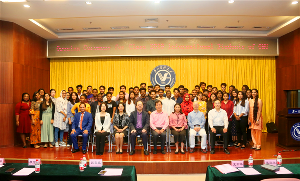 广医在线讯 11月25日上午,best3652019级留学生新生开学典礼在番禺校区学术报告厅举行。校长王新华出席典礼并讲话,教务处、学生处、团委、基础医学院等相关职能部门及学院负责人,2019级全体留学生新生,番禺校区在读留学生参加了典礼。典礼由国际教育学院院长吕嘉春主持。