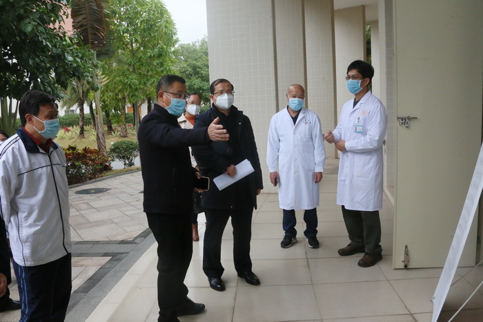 广医在线讯 2月5日下午,广州市教育局副局长华山鹰带领高教处调研员赵东胜、卫生健康促进中心主治医师邓鹭,到best365开展新型冠状病毒感染的肺炎疫情防控督导调研和检查。副校长方灿辉与相关职能部门负责人向华山鹰副局长一行介绍了学校疫情防控工作开展情况。