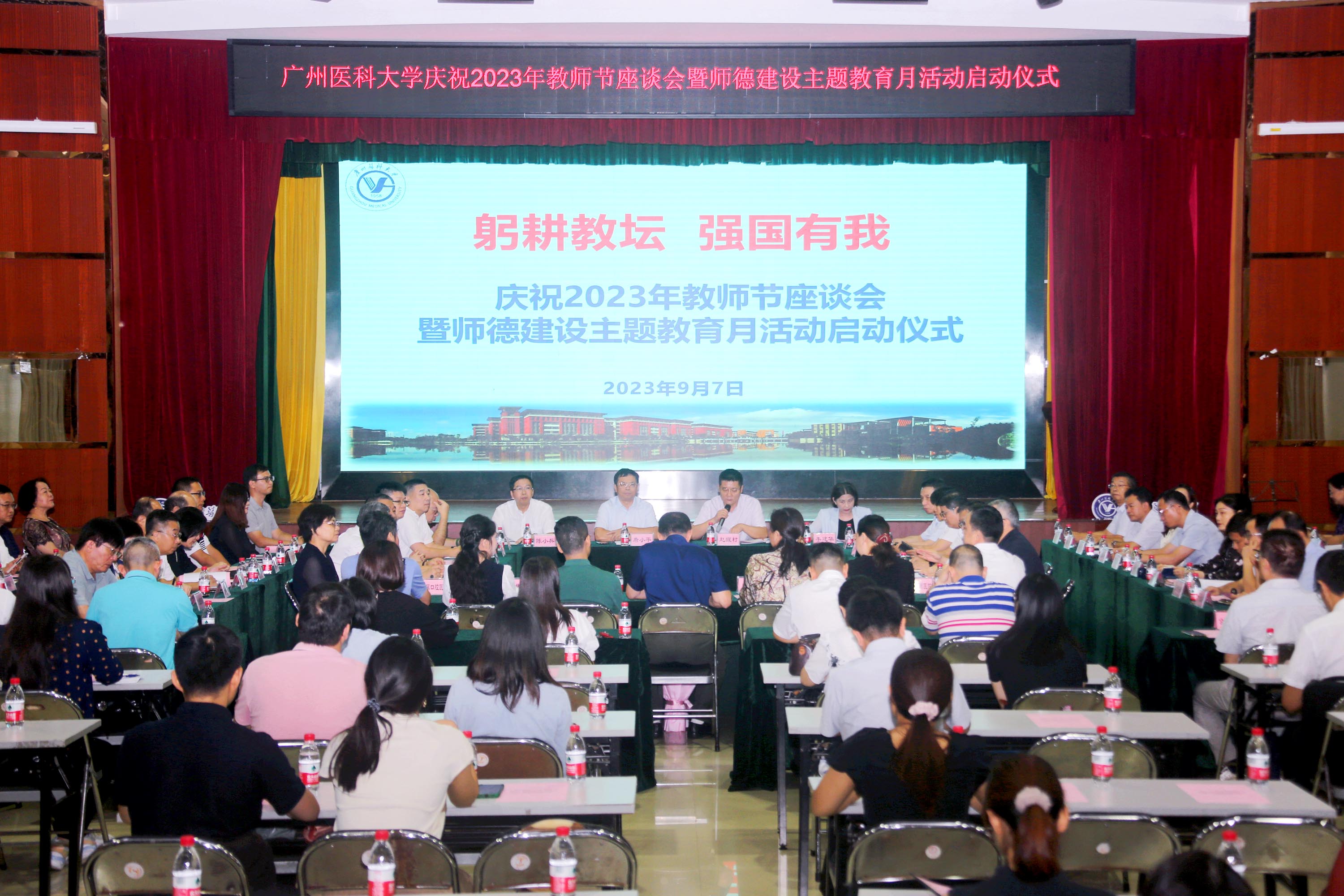 9月7日下午,best365中国官方网站庆祝2023年教师节座谈会暨师德建设主题教育月活动启动仪式在番禺校区举行。学校党委书记唐小平,校长赵醒村,各学院、附属医院、相关职能部门负责人,优秀教师代表、南山学者代表、离退休教师代表,以及2023年4月份以来入职的新进教职工,共130余人参加座谈会。会议由赵醒村校长主持。