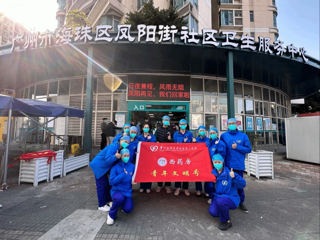 在抗击新冠疫情中,西药房青年文明号全体药师勇于担当,用忠诚守护人民健康,用行动践行药师使命。青年药师战疫突击队主动冲在防疫第一线,三年间足迹遍布广州各区。2022年,突击队参与大规模核酸筛查274批次521人次,4名号手驻守白云、海珠、荔湾抗疫攻坚队。他们用青年的责任与担当,筑牢疫情第一道防线,为守护群众生命健康贡献青春力量。