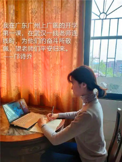 特殊环境下举行的特别的开学第一课,广医学子表示意义非凡、深受鼓舞,通过留言表达了对学校要求学生延期返校的理解,对中西医结合治疗新冠肺炎的期望,对医务人员逆行湖北的敬意,对学好本领报效祖国的使命感,对身为广医学子的自豪感,对前线医务人员早日凯旋的祝福……
