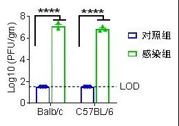 模型小鼠感染后肺内新型冠状病毒复制情况