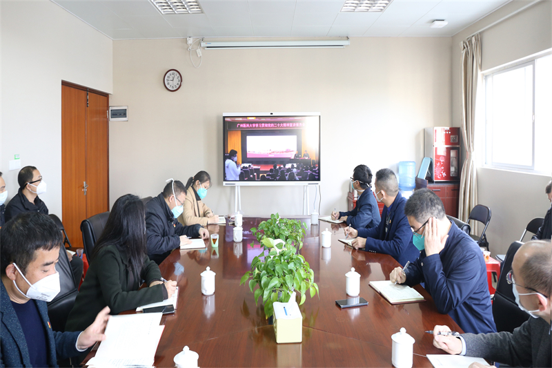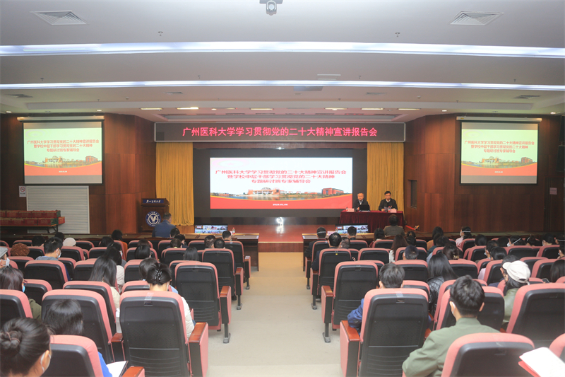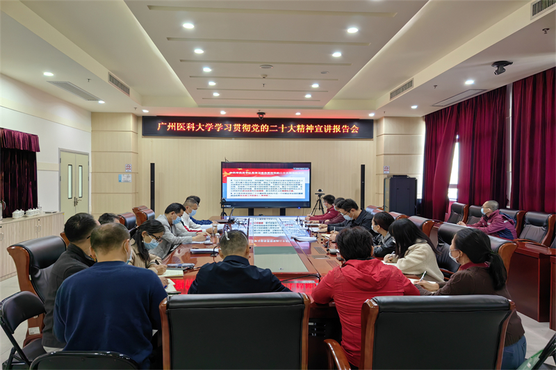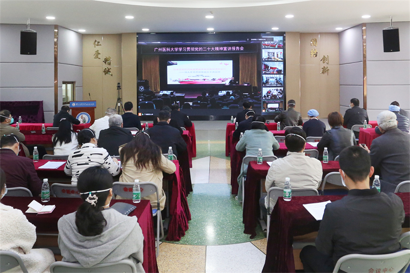 宣讲报告会采取线上线下相结合的形式召开。学校领导,在番禺校区工作的中层干部、教工党支部书记、党外代表人士以及番禺校区各直属党组织部分党员在番禺校区主会场参加会议;在越秀校区工作的中层干部、教工党支部书记及委员、校本部离退休职工党支部书记,各附属医院领导班子成员、办公室主任、纪检办主任和党支部书记分别在越秀校区、各附属医院分会场参加会议。