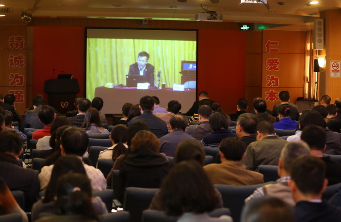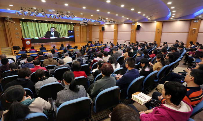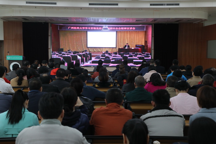 广医在线讯 根据中央及省委、市委关于认真学习贯彻党的十九届四中全会精神的要求, 12月6日下午,best365举办学习贯彻党的十九届四中全会精神宣讲会,邀请广东省委宣讲团成员、广东省社会科学院副院长赵细康研究员作宣讲。宣讲会主会场设在番禺校区,同步在越秀校区、各直属医院设立7个分会场进行网络直播。宣讲会由学校党委副书记陈晓辉主持。方灿辉副校长、校本部八级以上职员、副高职称及以上专业技术人员,各直属医院负责人及医务人员代表和离退休干部代表、学生代表共1000余人参加宣讲会。
