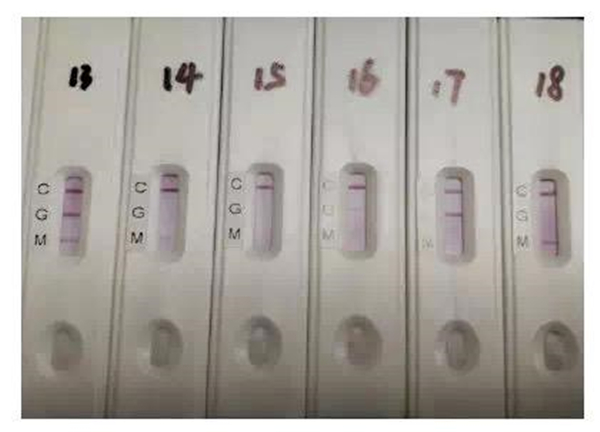 SARS-CoV-2 IgM-IgG联合抗体检测试剂在临床标本中检测的结果示意图