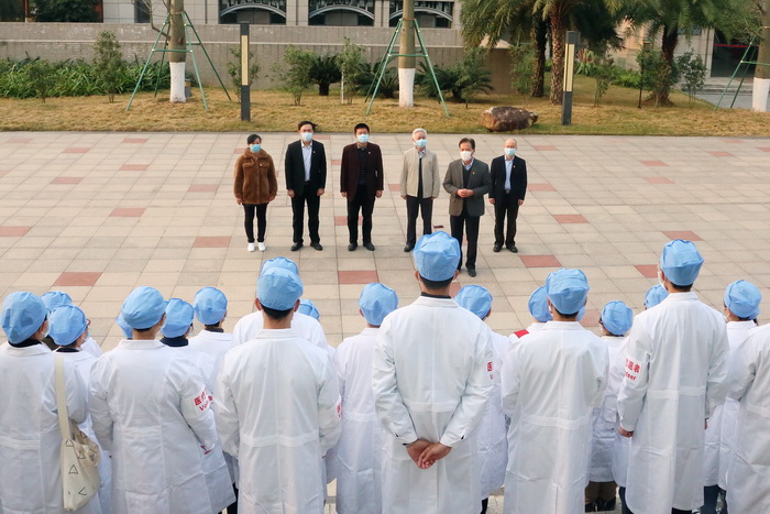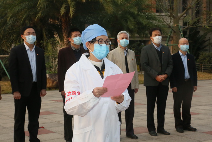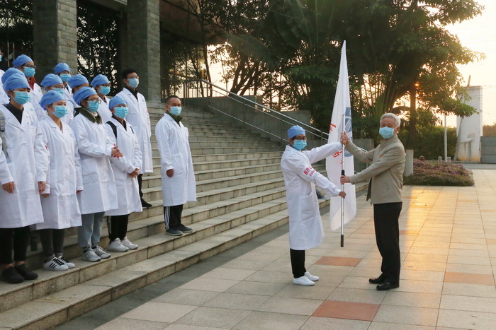 广医在线讯 2月1日,广医学生志愿服务队正式出发参加广州市疫情防控工作。当日清晨,学校举行简短的出征仪式为志愿者壮行。学校党委书记冉丕鑫,校长王新华,副校长赵醒村,学生工作部、团委、公卫学院等单位负责人及指导老师等与志愿者代表参加仪式。副校长赵醒村主持仪式。