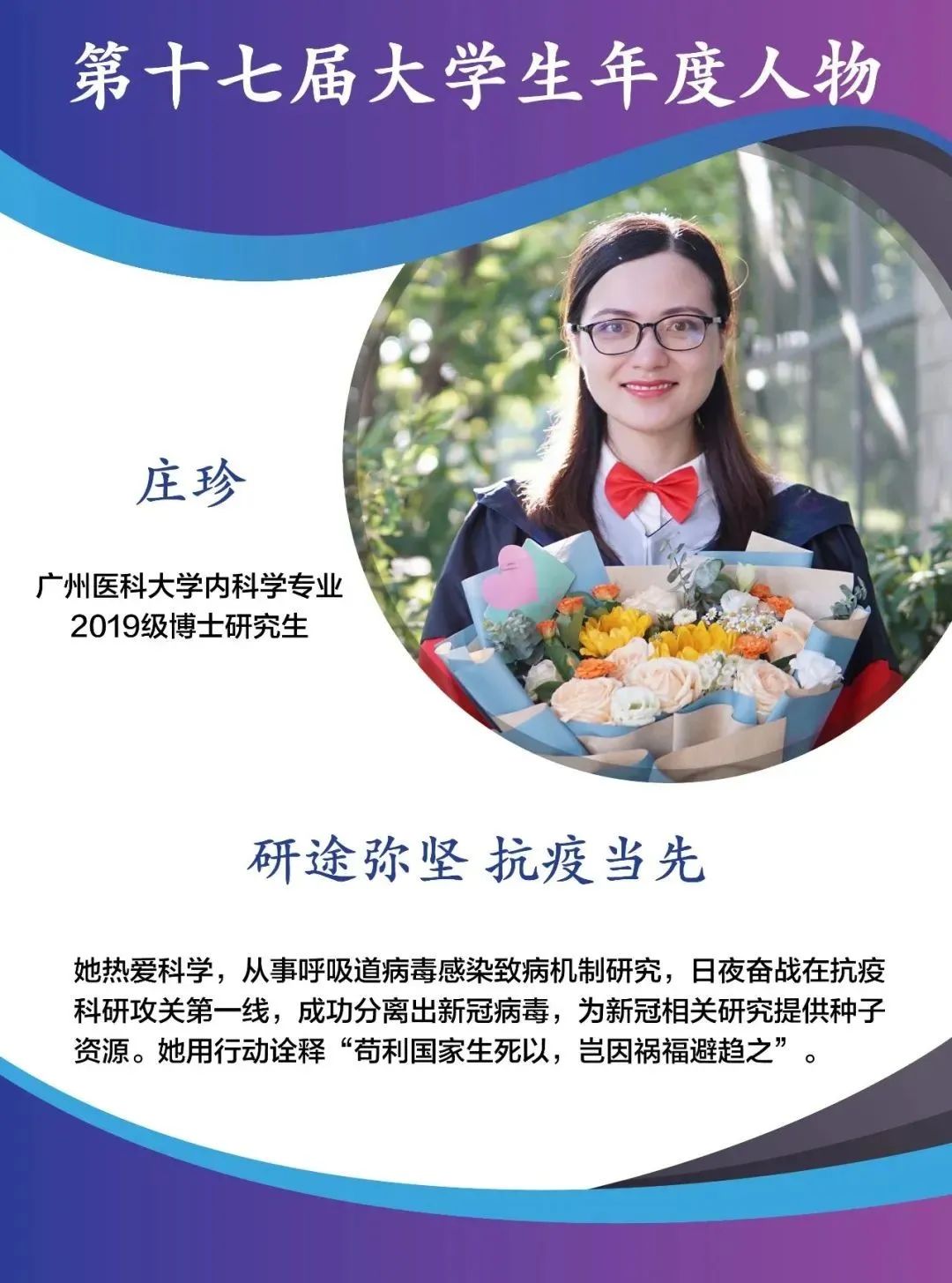 近日,由教育部、人民日报社共同指导,人民网、光明日报教育部、《大学生》杂志和中国大学生在线联合主办的第十七届“大学生年度人物”推选展示活动结果揭晓,共遴选出第十七届“大学生年度人物”20名,best3652019级博士研究生庄珍入选其中,成为广东高校两名获奖者之一。
