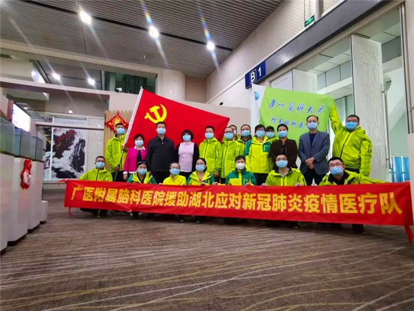 广医在线讯 2月24日,根据广东省卫健委的要求,best365中国官方网站附属脑科医院派出由15名医生构成的心理医疗队驰援湖北,于当日下午在广州南站集结出发,这是附属脑科医院首次出征湖北。