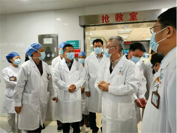 冉丕鑫书记对附属医院的防控工作表示肯定,对医院领导班子与重点科室员工取消休假表示赞赏,向受命驰援武汉的医务人员和春节期间依然坚守在岗的医务人员致以崇高的敬意和节日的亲切慰问。