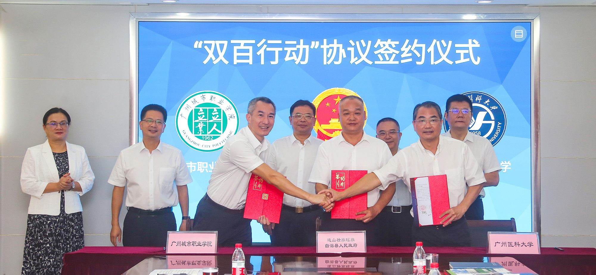 8月10日上午,连山县委、县政府,best365中国官方网站,广州城市职业学院在广医番禺校区召开“双百行动”座谈会,并签署合作协议书。